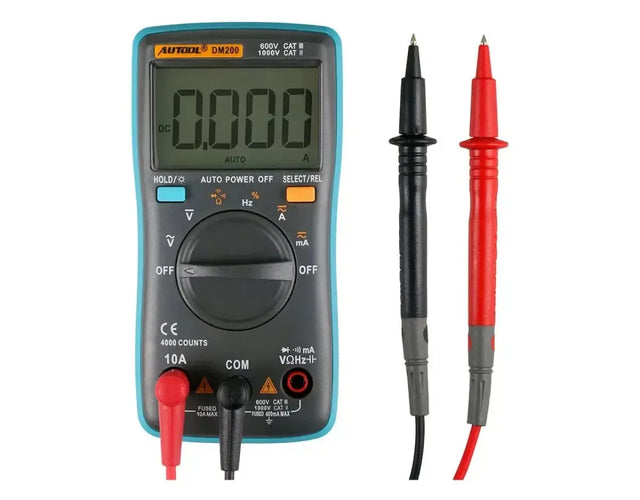 Autool DM200 to cyfrowy multimetr zaprojektowany do wykonywania szerokiego zakresu pomiarów elektrycznych. Urządzenie wyposażone jest w wyświetlacz LCD o rozdzielczości 6000-count oraz technologię True RMS, co zapewnia dokładne pomiary zarówno sinusoidalnych, jak i niesinusoidalnych przebiegów AC. Ten multimetr oferuje automatyczny i ręczny wybór zakresu do pomiaru napięcia AC/DC, prądu AC/DC, rezystancji, pojemności, częstotliwości i temperatury.