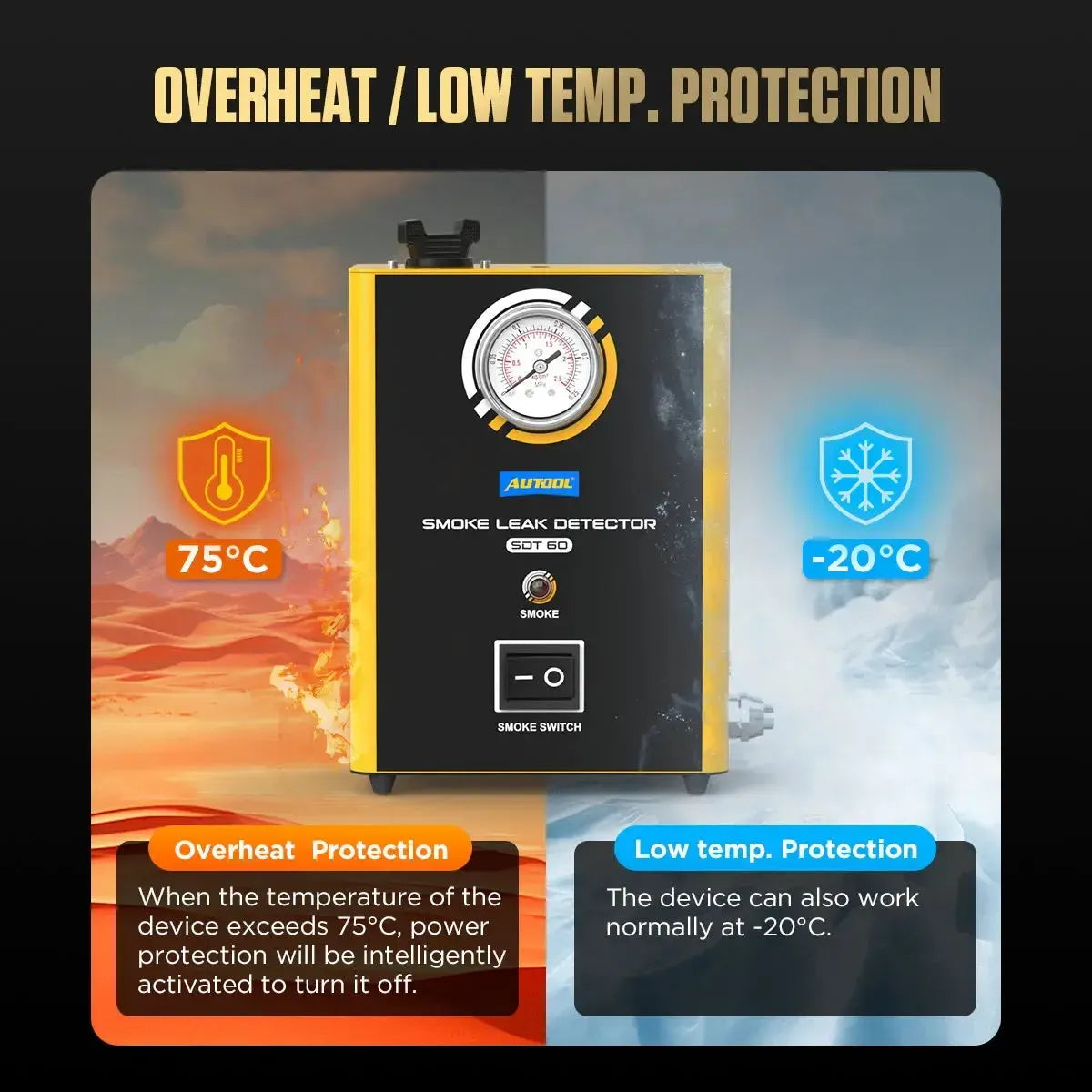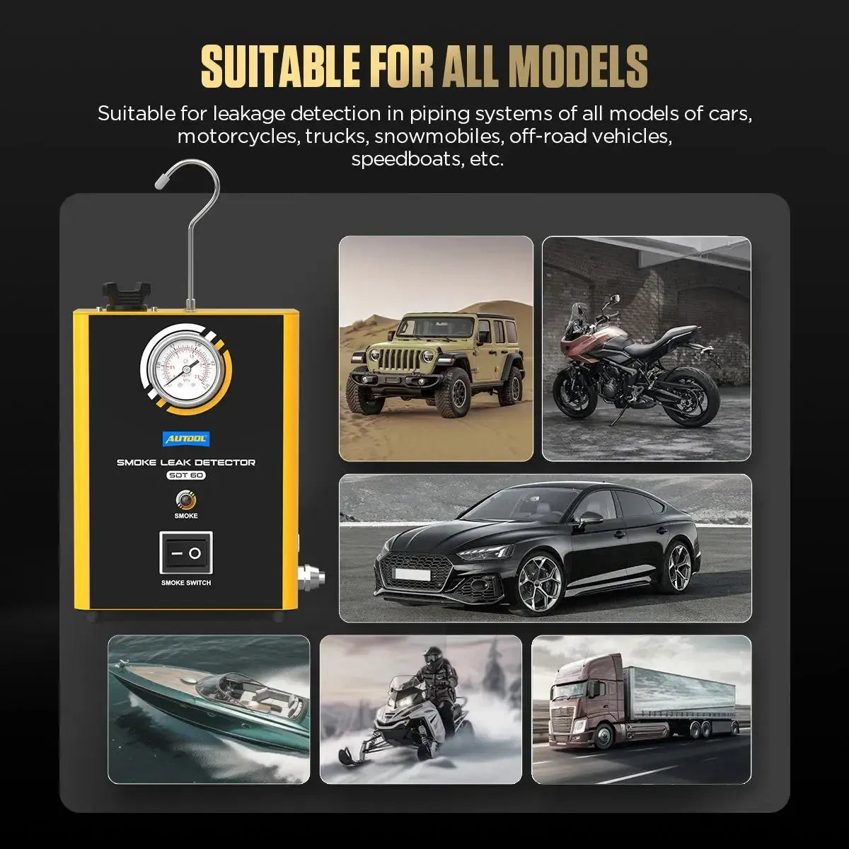Autool SDT60 jest używany do lokalizowania wycieków w zamkniętych systemach samochodów, silników i innych pojazdów.