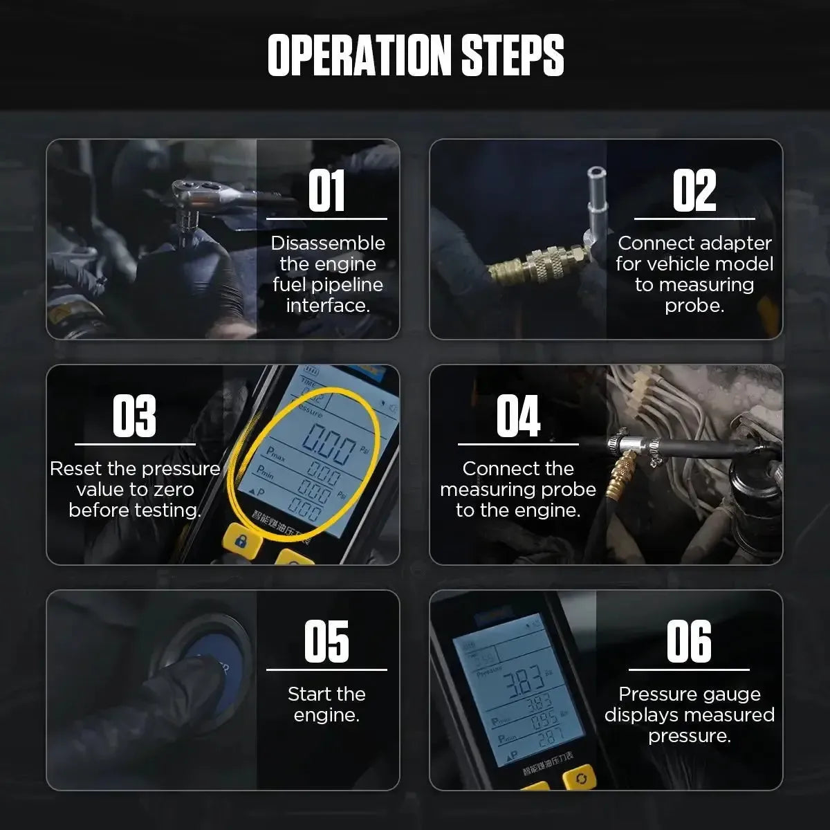 - 1x Cyfrowy manometr ciśnienia paliwa PT630