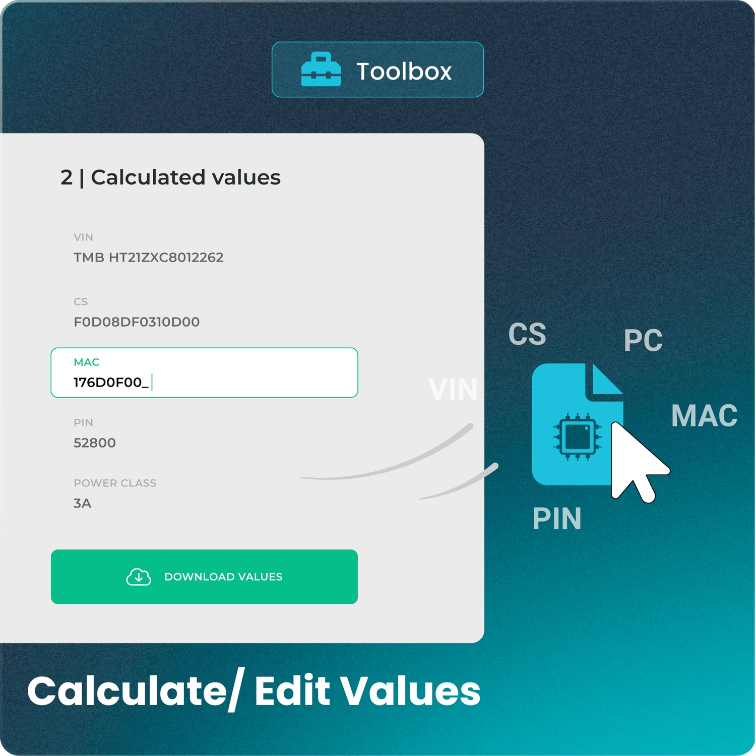 - Kalkulator i edytor wartości TCU (VIN/CS/MAC/POWER CLASS): Dla Audi, Seat, Skoda i Volkswagen (DQ200 (MQB/MQB Gen.2), DQ250 (MQB), VL381, DL501). W tym automatyczne wykrywanie typu TCU.